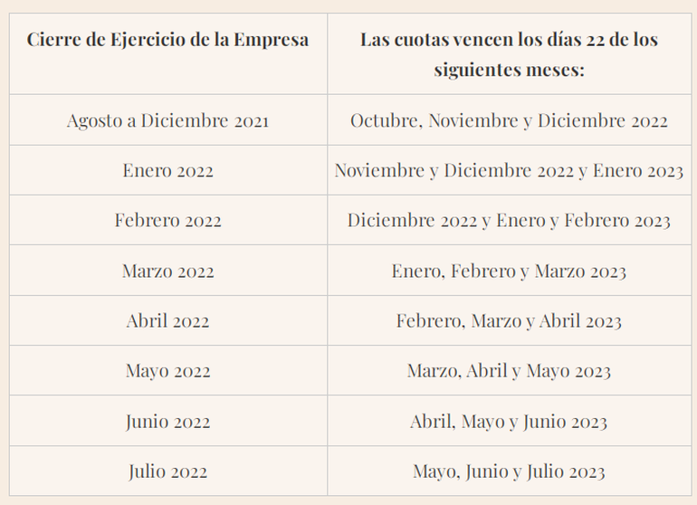 Las empresas que hayan efectuado el cierre de ejercicio de agosto a diciembre de 2021 inclusive deberán considerar el Período Fiscal 2021, mientras que las que efectuaron el cierre de enero a julio 2022 inclusive deberán considerar el Período Fiscal 2022.