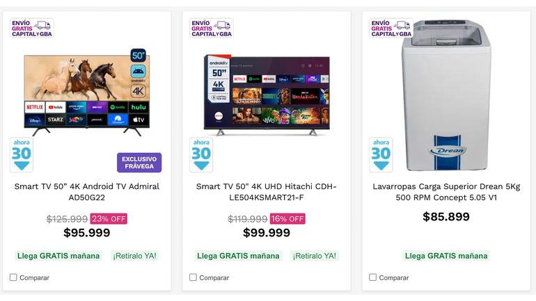 Este viernes entró en vigencia el plan Ahora 30 para la financiación y compra de electrodomésticos en 30 cuotas fijas. Así lo anunció el presidente Alberto Fernández, quién además confirmó la puesta en marcha de otro plan similar para jubilados y jubiladas de 42 cuotas. Tras el anuncio, este lunes comenzaron a aparecer en las plataformas de comercio electrónico y en los locales de electrodomésticos los primeros productos que entran en el plan, con una tasa subsidiada.