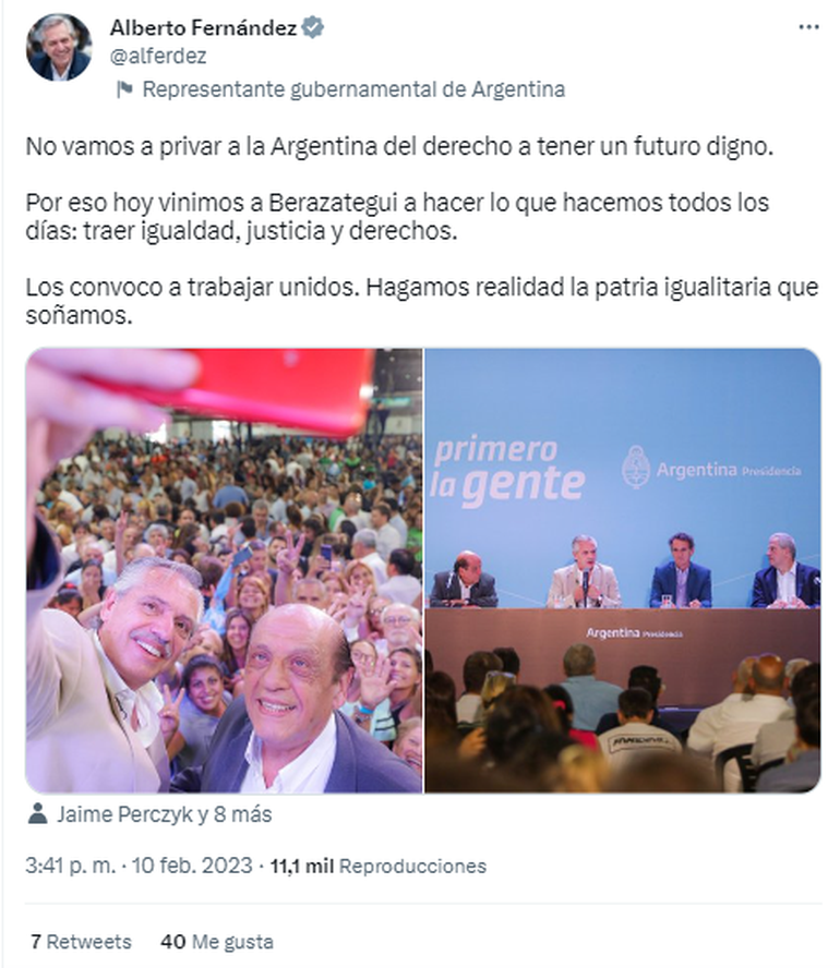 También destacó que durante la pandemia de coronavirus su gestión puso "en valor el Estado" y se "puso en pie el sistema sanitario". "No nos detuvimos, seguimos adelante y no nos equivocamos. Cometimos errores pero nunca fueron en perjuicio de la gente", sostuvo.
