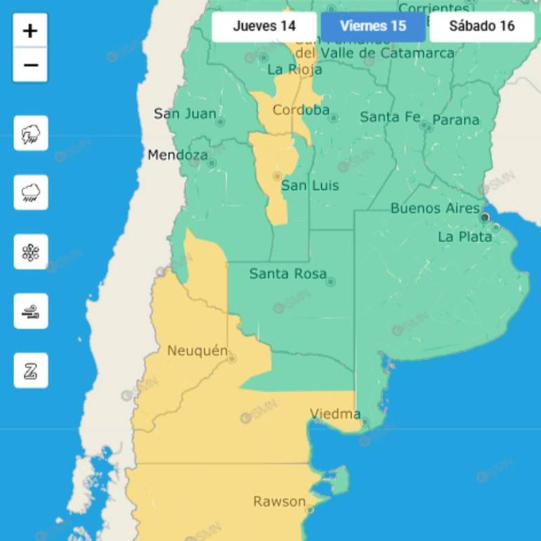 Las provincias bajo alerta amarilla para este jueves son Chubut, Río Negro y Neuquén.