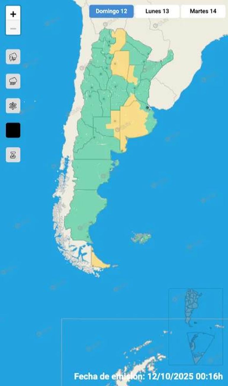 Según informó el organismo que depende del Ministerio de Seguridad, entre las provincias bajo alerta se encuentran algunas zonas de las provincias de Buenos Aires, Santa Fe, La Pampa, San Luis, Santiago del Estero, Salta y Tierra del Fuego.