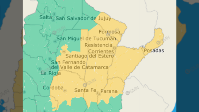 Afectará la mitad norte de Córdoba; gran parte de Santa Fe; la mitad norte de Entre Ríos; la mitad sureste de Santiago del Estero; la mitad sureste de Chaco; la mitad este de Formosa; y la totalidad de Corrientes y Misiones.