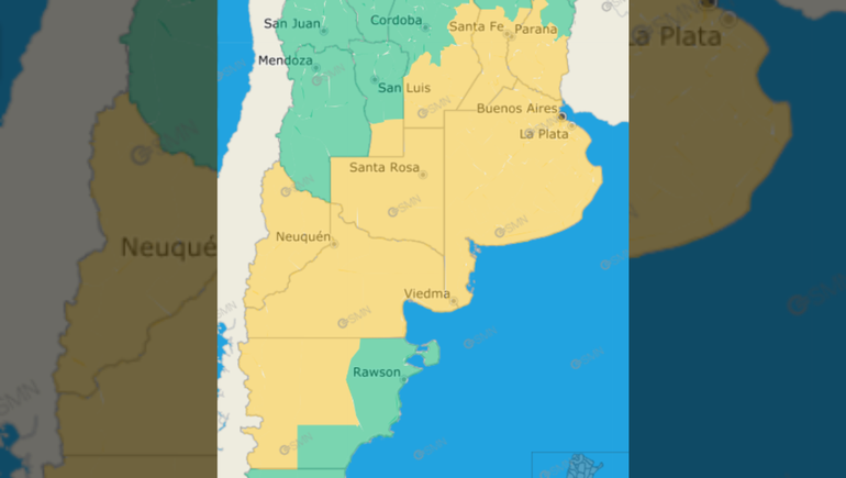 La alerta de nivel amarillo por tormentas rige para Entre Ríos, el sur de Santa Fe, el sur y este de Córdoba, la provincia y ciudad de Buenos Aires, el sur de San Luis, el este de Río Negro, el centro de Mendoza y La Pampa. Se espera que la tormenta impacte a partir de la tarde y continúe durante la noche.