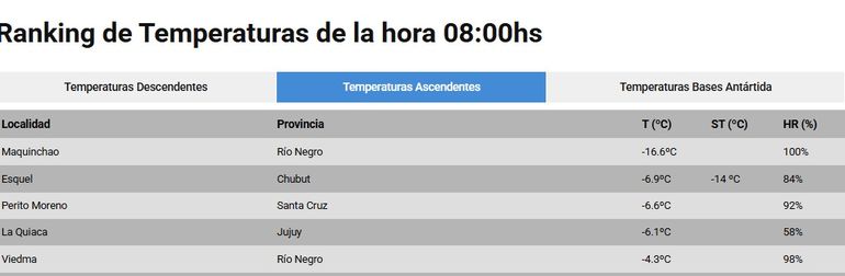 Ya a las 8 de la mañana, la localidad de Maquinchao, en Río Negro la temperatura alcanzaba los 16.6ºC bajo cero, convirtiéndose en la ciudad más fría del país.