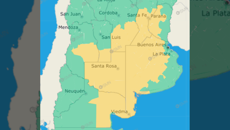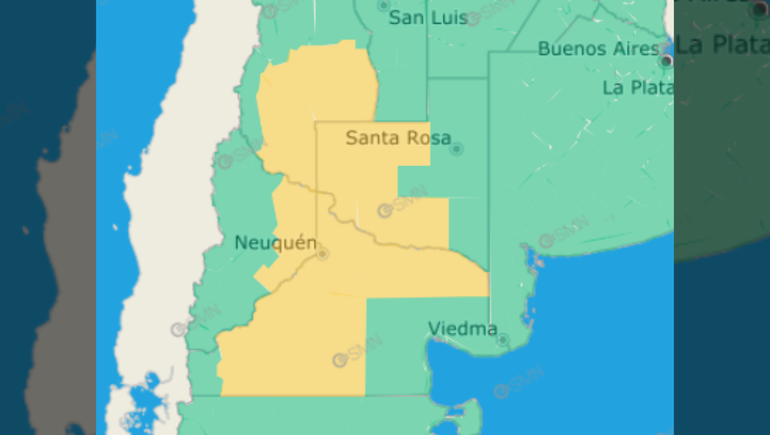 El organismo indicó que la advertencia está vigente para zonas de las provincias de Río Negro, La Pampa, Mendoza y Neuquén.
