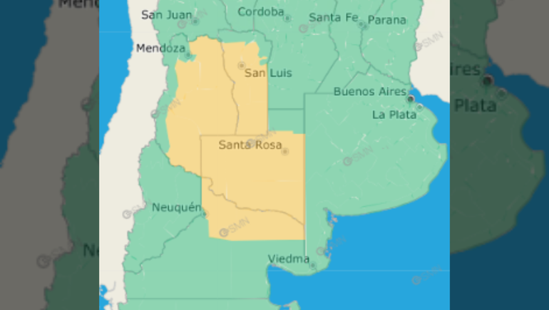 Mientras tanto, en La Pampa los vientos no serán tan fuertes, pero se esperan valores de precipitación de hasta 50 mm "que pueden ser superados de manera puntual".