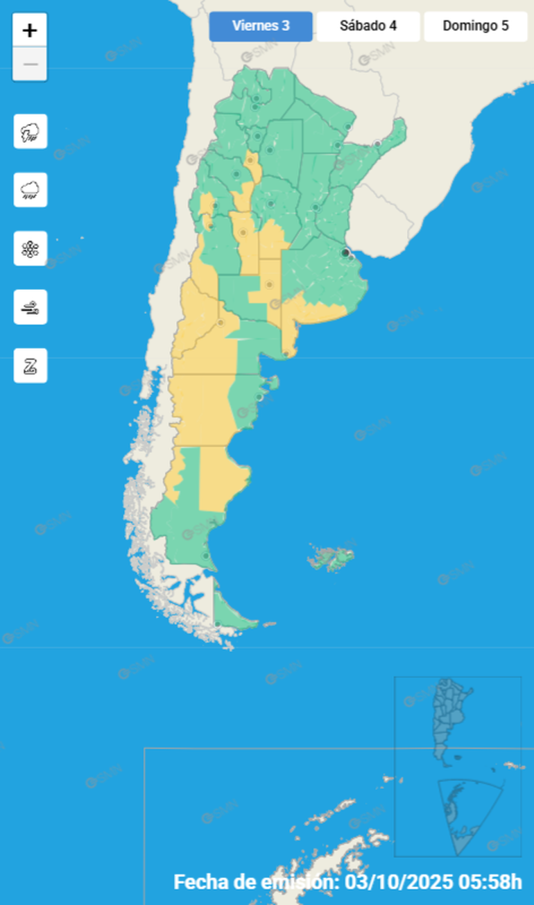 El Servicio Meteorológico Nacional (SMN) emitió en las últimas horas una alerta amarilla por fuertes vientos que afectarán a la mitad del país este viernes 3 de mayo.