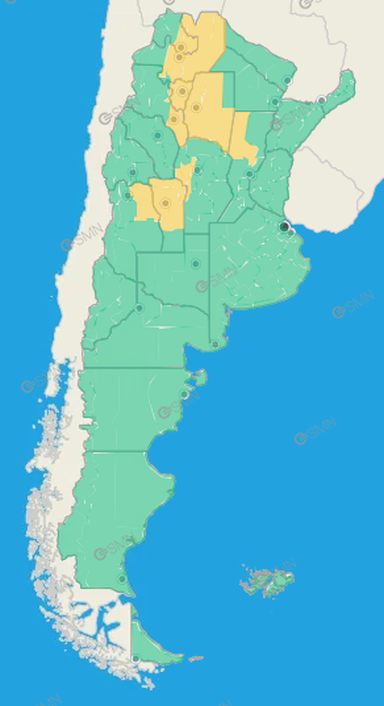 De acuerdo al reporte oficial difundido por el organismo, la advertencia alcanza a sectores del norte y centro de Argentina, particularmente a zonas de las provincias de Salta, Jujuy, Santiago del Estero, Tucumán, Catamarca, Santa Fe, San Luis, Mendoza y parte de Córdoba, son las áreas bajo alerta según el informe del organismo nacional.