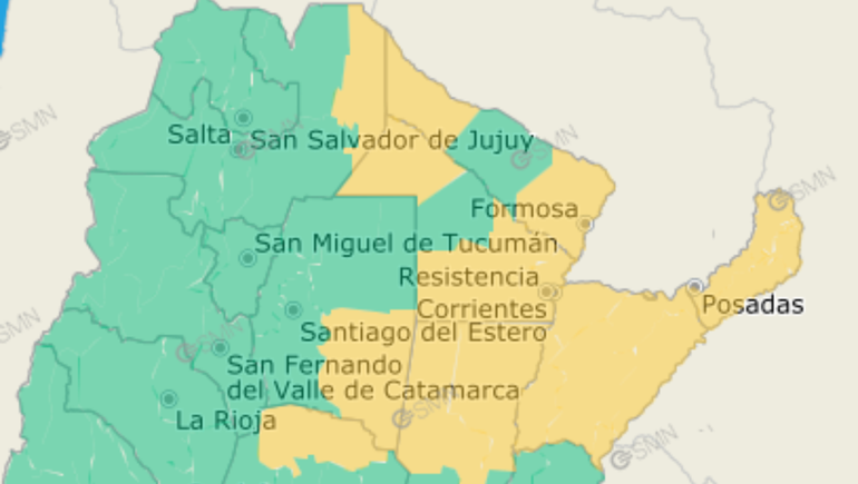 Las zonas afectadas serán Misiones, Corrientes, el norte de Córdoba, Chaco, Formosa, Santiago del Estero, Salta y Santa Fe.