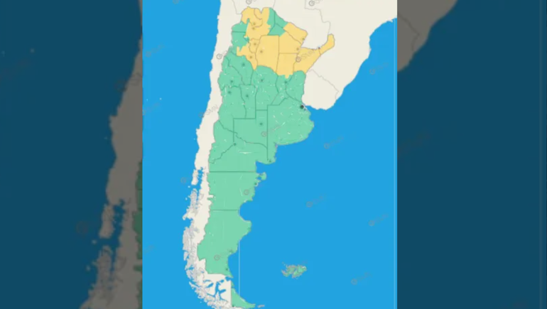 La alerta de nivel amarillo afectará a zonas de de Misiones, Corrientes, Formosa, Chaco, Santa Fe, Santiago del Estero, Tucumán, Catamarca, Salta y Jujuy.