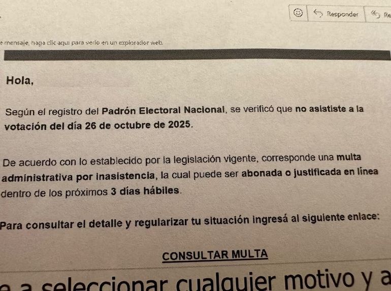 Desde la Justicia Nacional Electoral aclararon que nunca se envían mails para cobrar multas ni se solicitan datos personales a través de enlaces. Asimismo, aclararon que la única vía oficial para consultar el estado del elector o verificar si se debe pagar una sanción es el sitio infractores.padron.gov.ar.