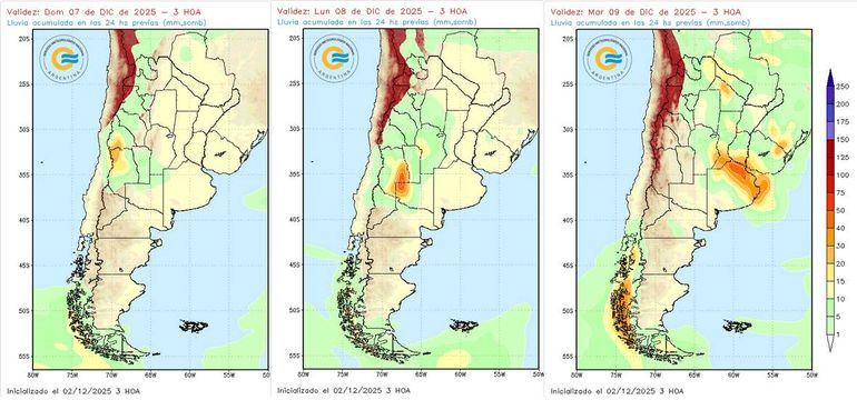 Tras días de calor agobiante, el alivio recién llegará el fin de semana. Los mayores acumulados de lluvias previstos entre el domingo 7 y el martes 9 de diciembre se ubicarían en la región de Cuyo, noroeste de Chaco, zona núcleo pampeana, noreste y este de Buenos Aires y sur de Entre Ríos.
