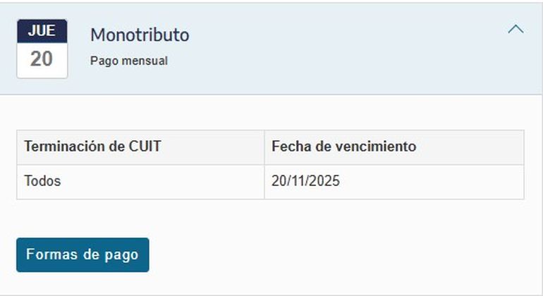 La Agencia de Recaudación y Control Aduanero (ARCA) definió los plazos y valores actualizados que deberán pagar en noviembre las personas inscriptas en el monotributo. Los valores, que están en vigencia desde agosto y se mantendrán iguales hasta febrero de 2026, van en sintonía con la variación del Índice de Precios al Consumidor (IPC) que se acumuló en los últimos seis meses.
