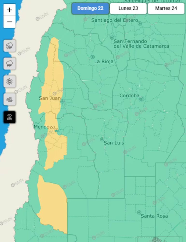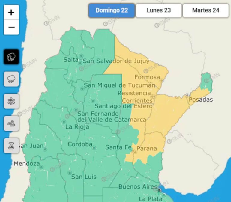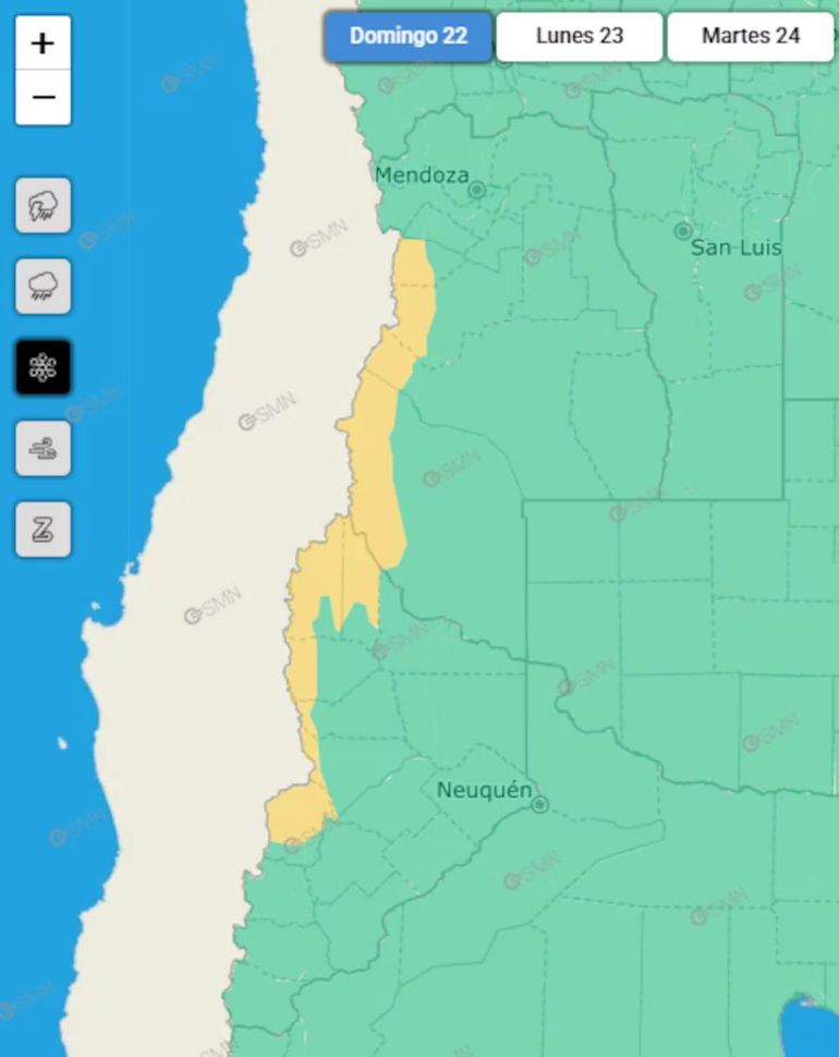 El Servicio Meteorológico Nacional (SMN) advirtió que el clima de este domingo 22 de marzo será variado a lo largo y ancho del país. En este sentido, emitió alerta amarilla por tormentas, lluvias, nevadas, fuertes vientos y viento Zonda en 13 provincias.