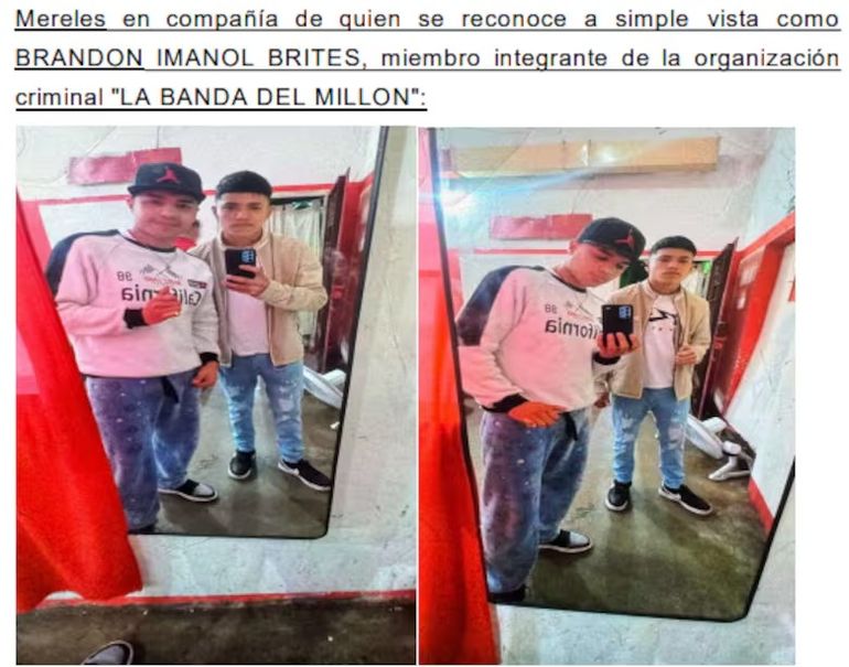 Uno de los videos es una videollamada tras el robo de Mónica Mancini, con parte del botín. El segundo, un video de la marcación de la propiedad de la influencer que fue enviado por Thiago Sandoval, también preso en el centro para menores de Virrey del Pino, a Mereles.