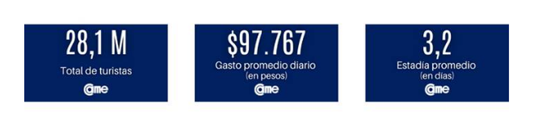 De acuerdo a los datos relevados por Confederación Argentina de la Mediana Empresa (CAME) la temporada finalizó con 28,1 millones de turistas recorriendo el país, con un impacto económico de $8,7 billones.