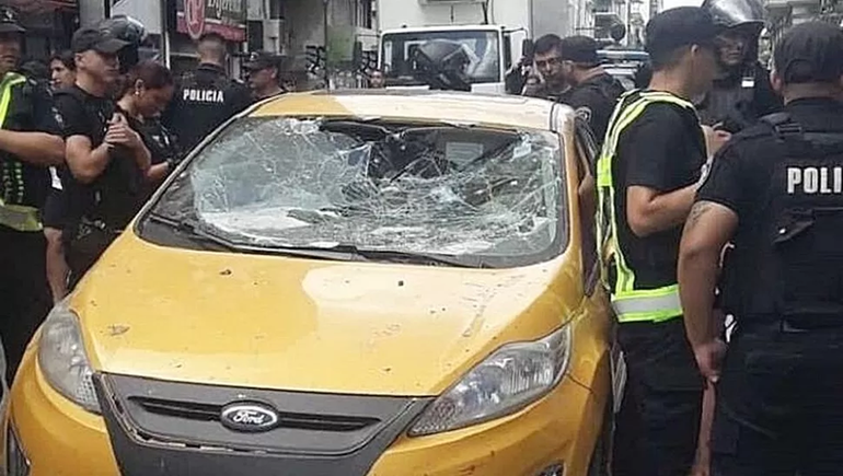 Tras lo sucedido, los manifestantes comenzaron a perseguir al auto hasta que lo alcanzaron y comenzaron a darle golpes, le rompieron vidrios y abollaron el techo.