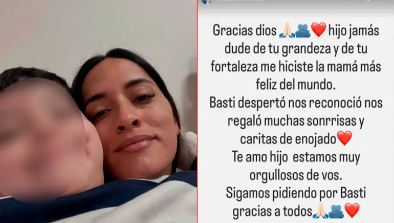 "Basti despertó, nos reconoció, nos regaló muchas sonrisas y caritas de enojado. Te amo hijo, estamos muy orgullosos de vos", expresó, junto a palabras de agradecimiento y pedidos de acompañamiento en oración.