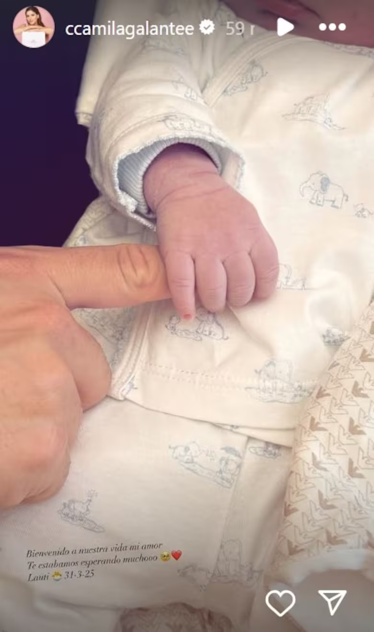 Camila, la madre, compartió en su Instagram una foto de la manito de su hijo con la leyenda: "Bienvenido a nuestra vida amor. Te estábamos esperando mucho",