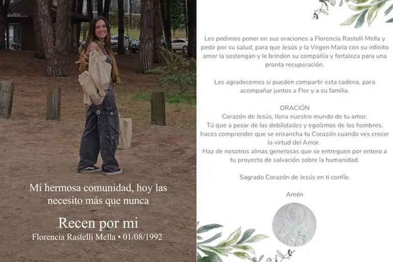 Desde su cuenta oficial de Instagram, compartieron un mensaje cargado de emoción que rápidamente se viralizó. "Mi hermosa comunidad, hoy las necesito más que nunca. Recen por mi. Florencia Rastelli Mella - 01/08/1992", publicaron en las historias de la red social, junto a una imagen suya.
