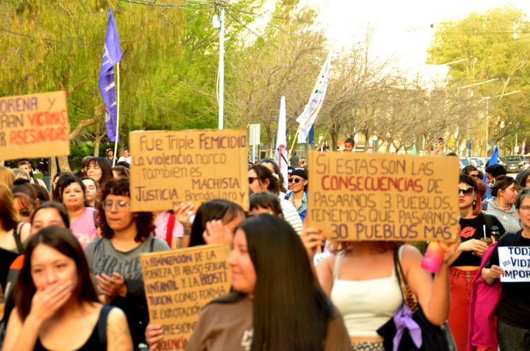 Las principales consignas que se mostraron en la masiva movilización fueron: “Justicia por Brenda, Lara y Morena”, “Ni Una Menos”, “Fue triple femicidio”, “Paren de matarnos” y “Emergencia en violencia contra las mujeres”.