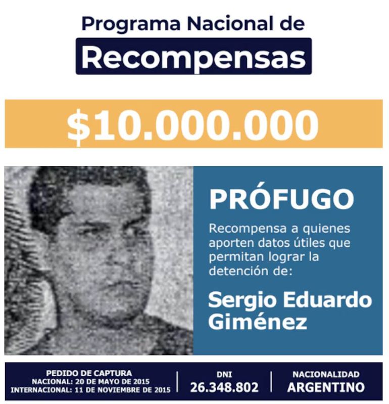 Los incrementos quedaron plasmados en las resoluciones 87/2026 y 88/2026, que fueron publicadas este miércoles a la madrugada en el Boletín Oficial. Así, las autoridades comunicaron que las personas que brinden datos certeros sobre el paradero de Giménez recibirán $10 millones. En el caso de Liquitay, la cifra será de $5 millones.
