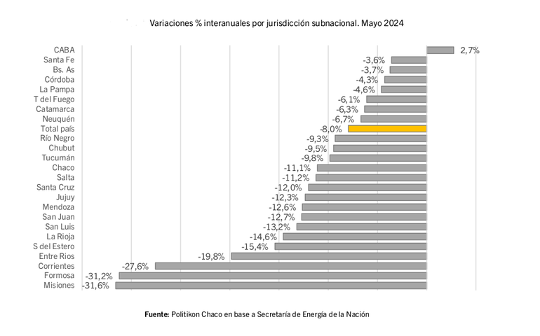 Así lo indica un informe de la consultora Politikon Chaco con base en datos de la Secretaría de Energía de la Nación.