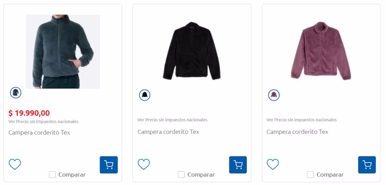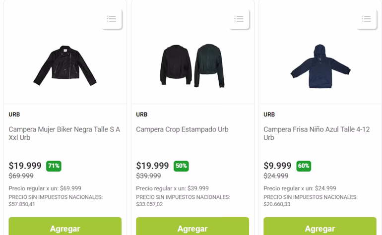 Carrefour también lanzó ofertas con precios muy por debajo de lo habitual. Las camperas se venden a $19.990.