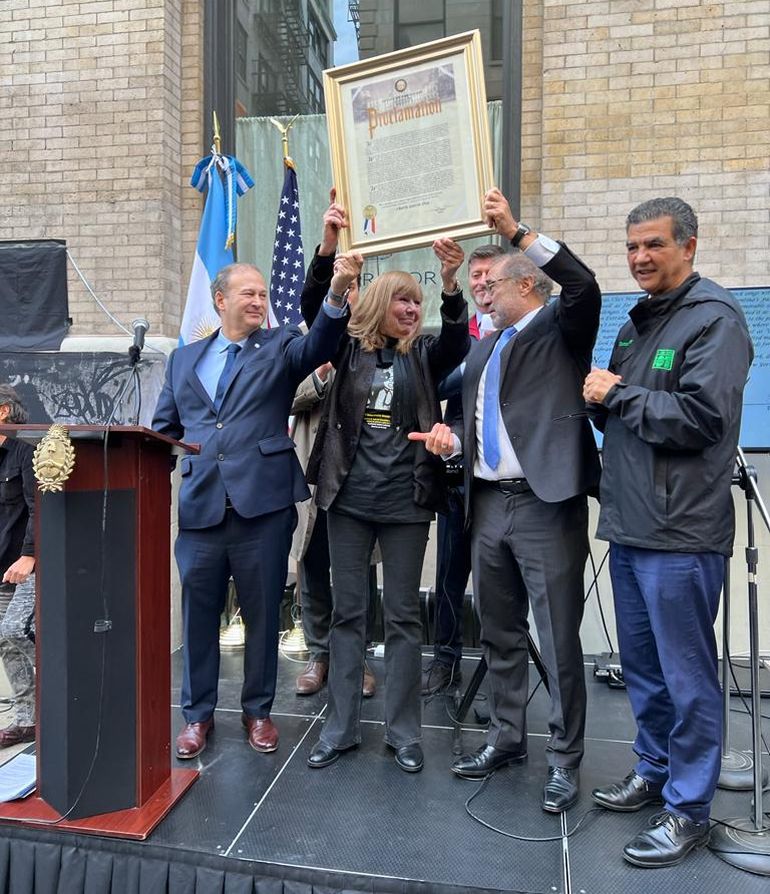 En su alocución, el embajador Argüello destacó que “es un gran orgullo para todos los argentinos que esta icónica esquina de Nueva York se llame a partir de ahora ‘Charly García Corner’. Agradecemos a las autoridades por el apoyo recibido y al alcalde Adams especialmente por la elocuente proclama en la que destaca a Charly como compositor, artista, instrumentista y cantante; homenajeamos así a un genio que ya es un ícono del rock nacional y mundial, además de una figura que está en el corazón de los argentinos”.