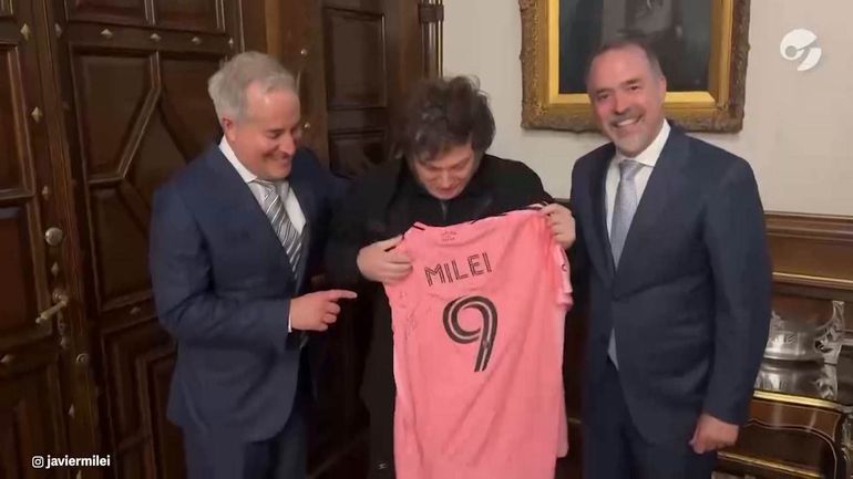 En la misma línea, amplió: "Tengo los guantes que me regaló el hijo de Waldo Wolf, que uno dice ‘Milei’ y el otro dice ‘Viva la libertad, carajo’. Tengo la pelota que me regaló Infantino, la del Mundial, con mi nombre. Tengo una réplica del botín de Messi, hecho con basura reciclable".