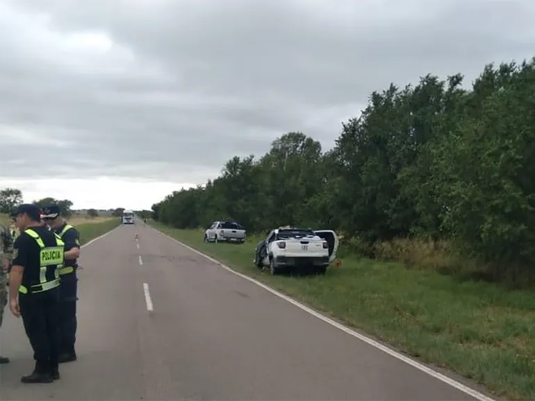 El cuerpo de la víctima fue hallado sin signos vitales en el asiento del conductor. La camioneta blanca permanecía detenida sobre la banquina sur de la ruta provincial, con el frente orientado hacia el este. El impacto era evidente: el sector izquierdo del vehículo presentaba daños de gran magnitud y el parabrisas estaba astillado.