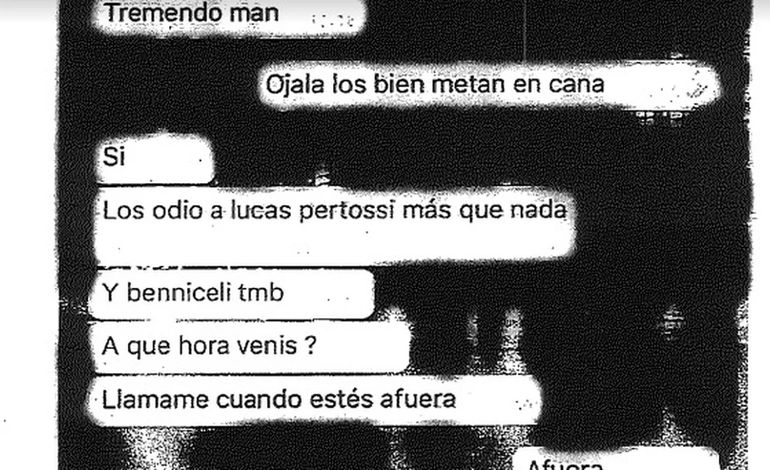 "Yo simplemente los conocía de vista, del mismo boliche, de la misma ciudad. Zárate es una ciudad chica. Los cruzaba de vista, pero no eran amigos ni nada. Pertosi nunca me pareció buen chico, pero nada más", deslizó en alusión a los chats en los que aseguró que odiaba tanto a Pertosi como a Benicelli. (Cabe destacar que en la audiencia de hoy, Pablo Ventura confirmó que fue él quien escribió esos mensajes a un amigo).