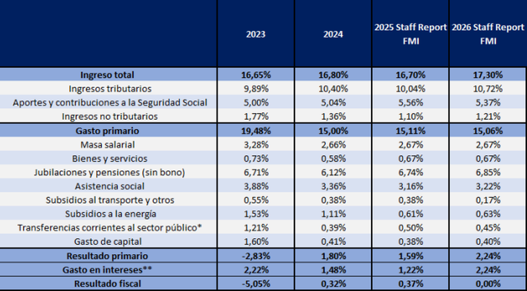 Por otro lado, indica que “en términos de gasto público, se proyecta un incremento interanual de 0,1 puntos del PBI de gasto primario”. “Este incremento estaría explicado fundamentalmente por el incremento del gasto en jubilaciones y pensiones de 0,6 puntos del PBI y la baja del gasto en subsidios a la energía de 0,5”, detalla el trabajo.