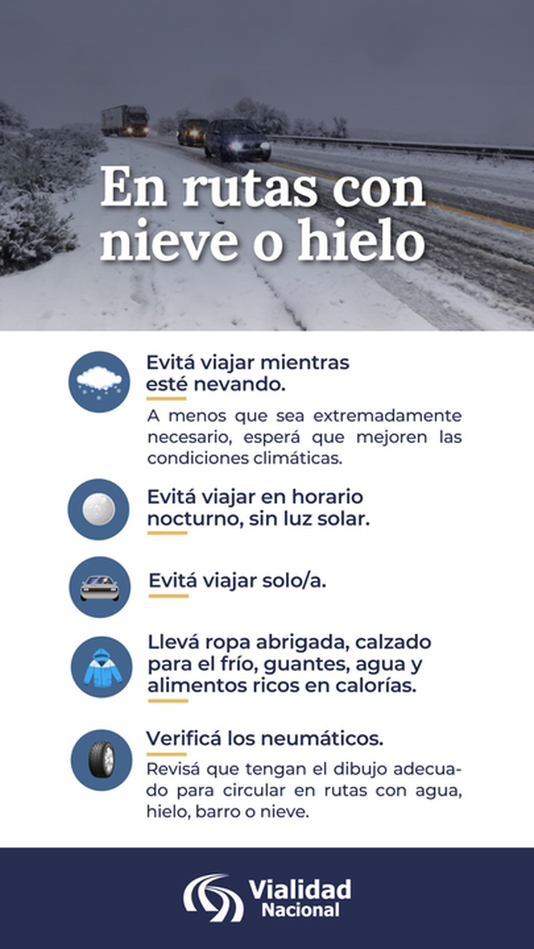 Con la llegada de los días de bajas temperaturas, suelen acumularse escarcha y nieve en las rutas, por eso las autoridades recomiendan siempre tomar importantes recaudos a la hora de decidir salir a la ruta en automóvil.