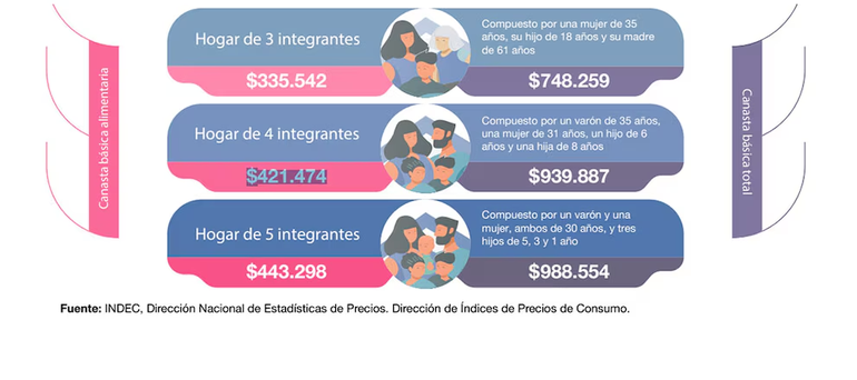 Justo como el salario mínimo sirve como unidad de medida, La Canasta Básica Total (CBT) es un indicador clave para medir el costo de vida y los niveles de pobreza en la Argentina. Elaborada por el Instituto Nacional de Estadística y Censos (INDEC), la CBT representa el conjunto de bienes y servicios que requiere una familia tipo para satisfacer sus necesidades básicas.