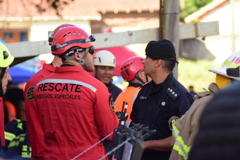 Además, desde el jueves se usa una grúa tipo pluma, para la remoción de escombros de gran tamaño, capaz de levantar trozos de cuatro toneladas a la vez. Entre el personal de rescate hay efectivos de seguridad y bomberos de la Policía Bonaerense, apoyados por la brigada K9 con perros de rescate, drones, un helicóptero y unidades de atención médica avanzada. Javier Alonso, ministro de Seguridad bonaerense, se encuentra presente en el lugar desde el martes a la mañana.