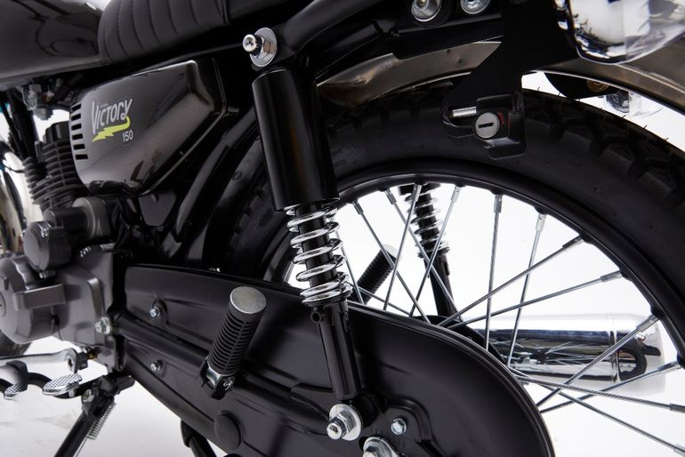 La moto Victory 150 está concebida específicamente para el uso urbano, es ideal para desplazamientos cortos sobre asfalto dentro de las ciudades. Está equipada con un motor monocilíndrico de 4 tiempos y 149 cc refrigerado por aire que entrega una potencia de casi 9 CV a 8500 rpm y se acopla a una caja manual de 5 velocidades.