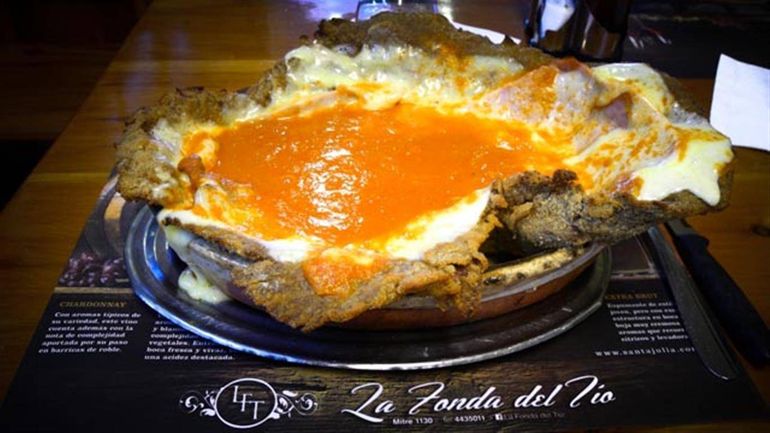 “La milanesa napolitana, una chuleta de carne empanizada cubierta con salsa de tomate, jamón y queso derretido es una delicia para la multitud y una fusión perfecta de influencias argentinas e italianas”, describe.