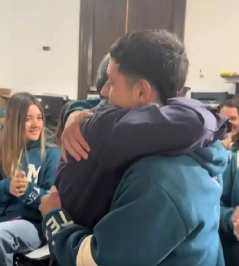 El momento quedó registrado en un video que los propios estudiantes compartieron en las redes sociales. La grabación muestra cómo una clase común se transforma en un instante emotivo, con risas, complicidad y una reacción que terminó emocionando a miles de personas que vieron las imágenes.