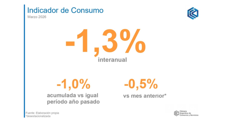 "Este indicador desarrollado por la CAC refleja la evolución del consumo de los hogares en bienes y servicios finales con una periodicidad mensual, expandiendo y complementando los aportes de información que realiza la Cámara al seguimiento del comercio y la actividad económica", señaló la entidad.