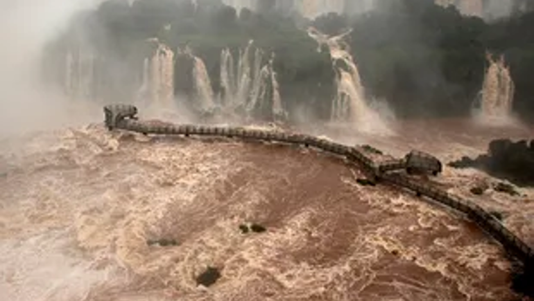 La información oficial señaló que el caudal superó los 10.300 metros cúbicos por segundo, generando daños en las pasarelas o caminos que cruzan las Cataratas.