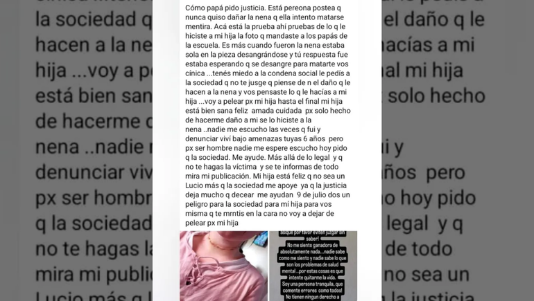 A través de sus redes sociales, aseguró que: “No quiero que mi hija no sea un Lucio más, que la sociedad me apoye”. Para el padre, el caso tiene similitudes con el de Lucio Dupuy, no solo por la violencia sufrida, sino también por los mecanismos institucionales que, según denuncia, fallaron en proteger a la víctima a tiempo.