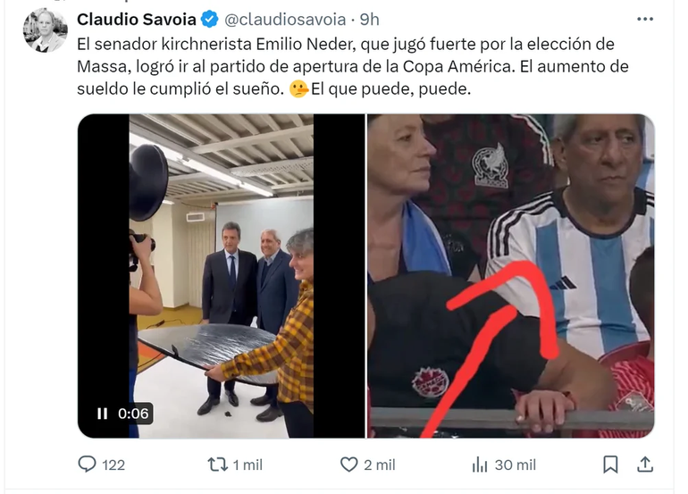 A seis meses de la asunción de Javier Milei, el periodista se hizo la pregunta de si “¿la casta tiene miedo?” frente a la viralización en redes sociales sobre la presencia del senador nacional peronista Emilio Neder en la Copa América en Estados Unidos.