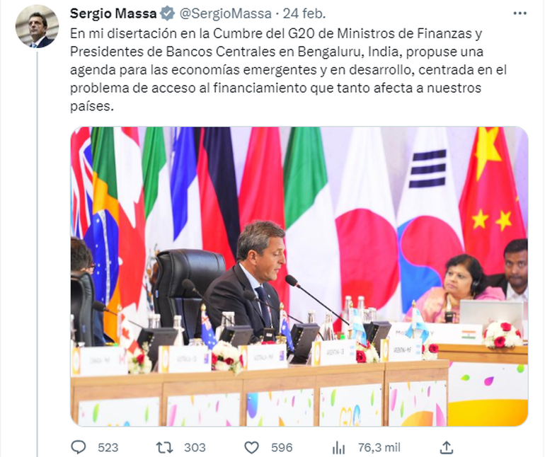 El planteo que Massa hizo ante el G20 y ante Georgieva es ver la forma de medir los costos de la guerra de Ucrania para países emergentes, y que se traduzcan en un alivio concreto en los programas vigentes de los países de ingresos medios con los organismos, sobre todo con el FMI.