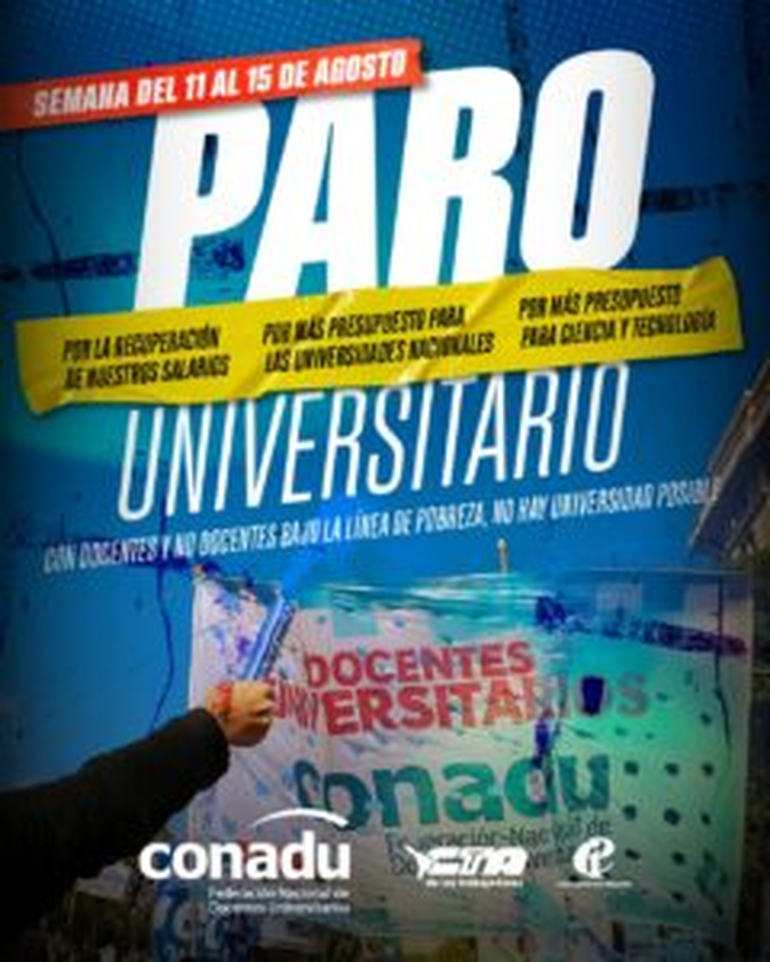 Desde este lunes, con la consigna “basta de salarios debajo de la línea de pobreza”, docentes universitarios de todo el país paran. En algunas instituciones, la medida dura esta semana completa y luego tres semanas consecutivas de paros de 48 horas con días rotativos. Esto durará hasta el 5 de septiembre.