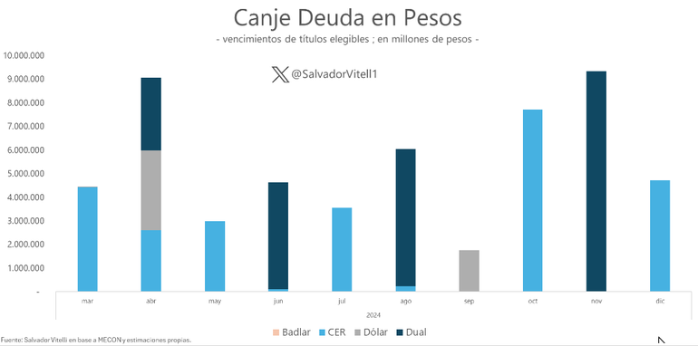 “Invitan no solo al sector público a participar del canje, sino también al sector privado.En el total del año vencen $ 56,5 billones, por lo que el despeje del perfil sería muy abultado en caso de conseguir buena participación”, señaló el economista Salvador Vitelli, Head of Research de Romano Group.