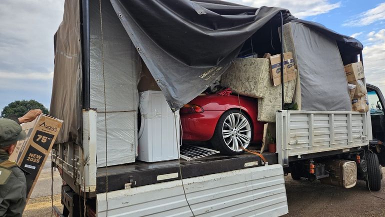 En momentos que se encontraban realizando el control de documentación, los gendarmes notaron algo extraño en el sector de la carga y vieron que entre los colchones, cajas, muebles y electrodomésticos había un automóvil.