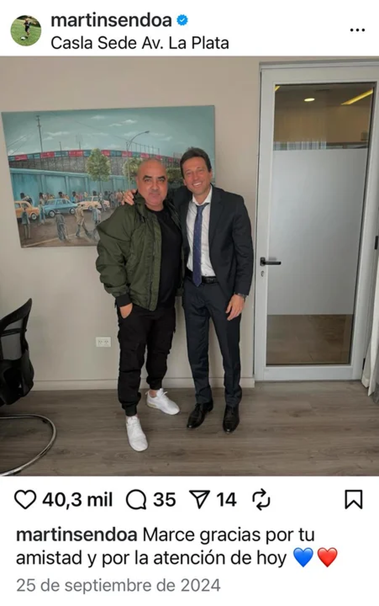 Luego del fuerte cruce, Sendoa brindó declaraciones y comentó que había ocurrido en aquel momento. "Solo quiero aclarar otra vez la discusión que tuve con este señor. La bronca fue porque en su momento cuando yo traje a un jugador a Racing, este quiso robarlo y llevarlo a una empresa de representaciones, lo cual a mí me parece que el que esta haciendo negocio a su favor es el, ya que ahí no veo que esté trabajando para su club como el tanto dice", dijo en una entrevista con Pablo Carroza.
