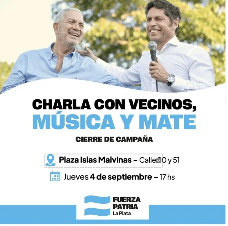 De esta forma, luego del cierre de campaña de La Libertad Avanza que tuvo a Javier Milei como orador principal, Kicillof realizará su clásica mateada junto a vecinos y militantes en la plaza Islas Malvinas de la ciudad de La Plata.
