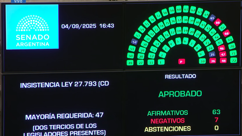 Por 63 votos afirmativos, el Senado de la Nación ratificó este jueves la Ley de Emergencia en Discapacidad y rechazó el veto total que había impuesto el presidente Javier Milei. La decisión obligará al Poder Ejecutivo a promulgar la ley, en cumplimiento del artículo 83 de la Constitución Nacional. El caso marca un hito legislativo: hacía 22 años que el Congreso no invalidaba un veto presidencial.